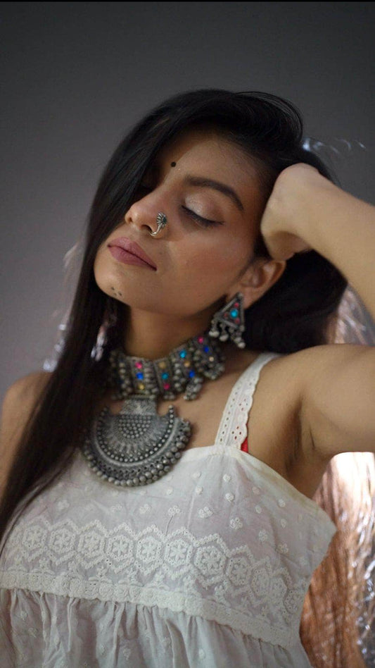 Show off your unique style with this beautiful Silver-Toned & Off White Brass Silver-Plated Bohemian...