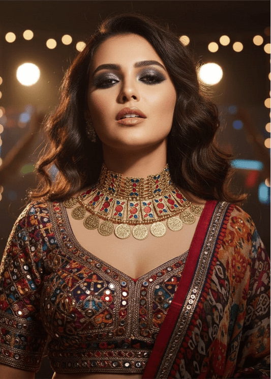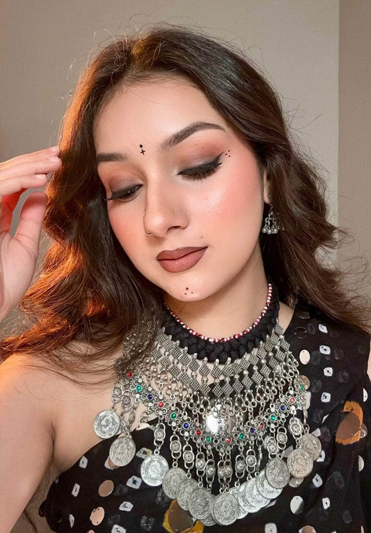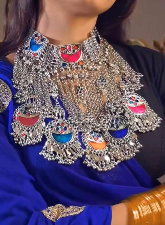 Heer Meenakari Work Afghan Tribal Design Oxidised Silver Plated Handcrafted POM POM Jewellery Set