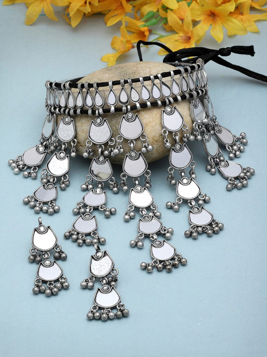 This one-of-a-kind Silver-Plated Crystal-Studded Oxidised Jewellery Set is the perfect accessory for any outfit. Featuring...