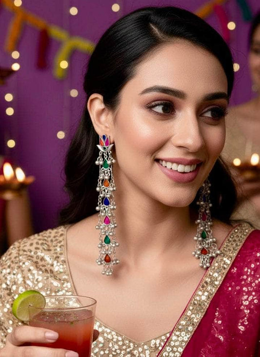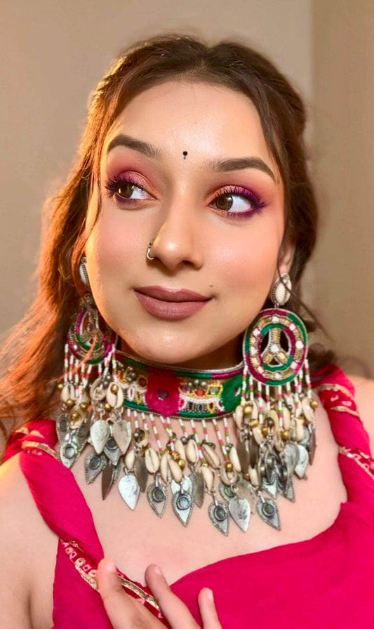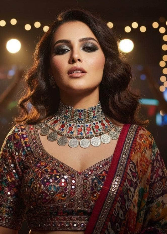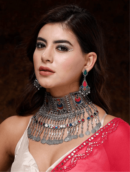 Madhubala Meenakari Work Afghan Tribal Design Oxidised Silver Plated Handcrafted Jewellery Set