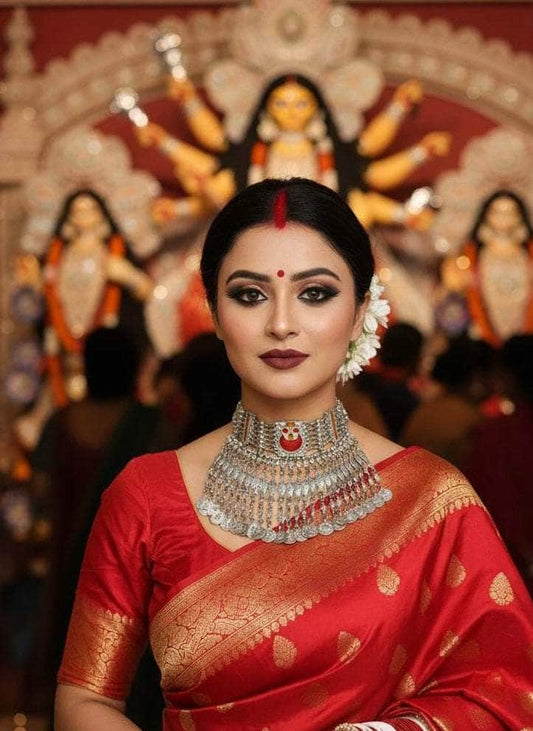 Navratri Special Antique Oxidised Silver Plated Stone Studded Handcrafted Coin Jewellery Set