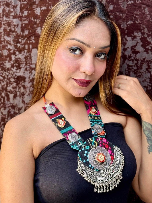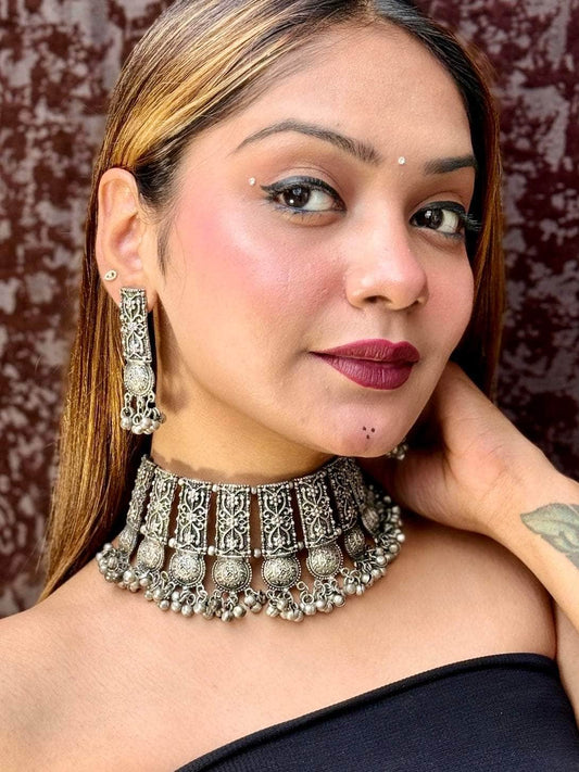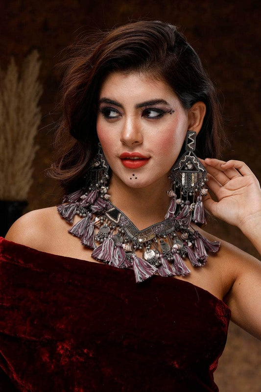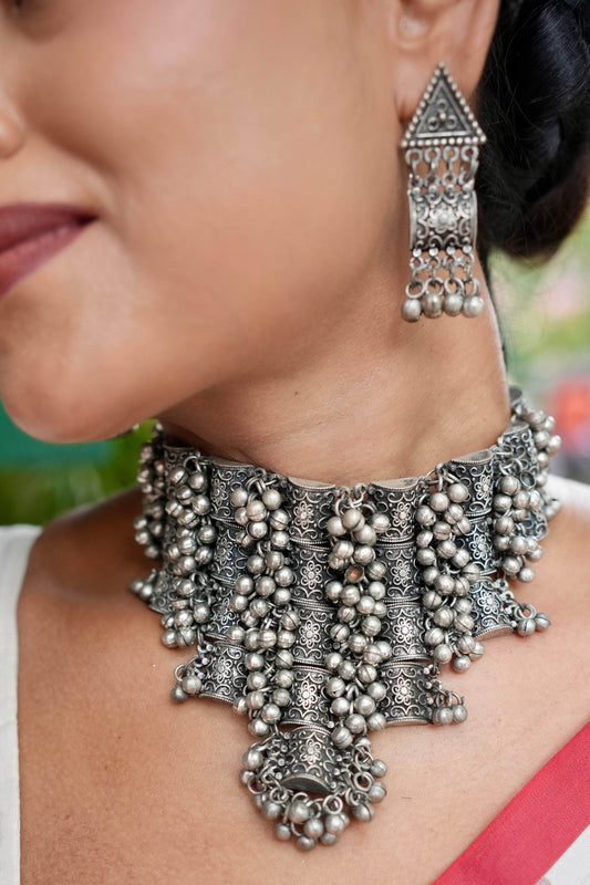 Navratri Special Oxidised Silver-Plated Tribal Filligree Temple Handcrafted Jewellery Set