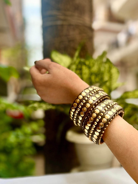 This Women Oxidised Silver-Plated Stone Studded Bangle-Style Bracelet features a stunning silver-plated body studded with...