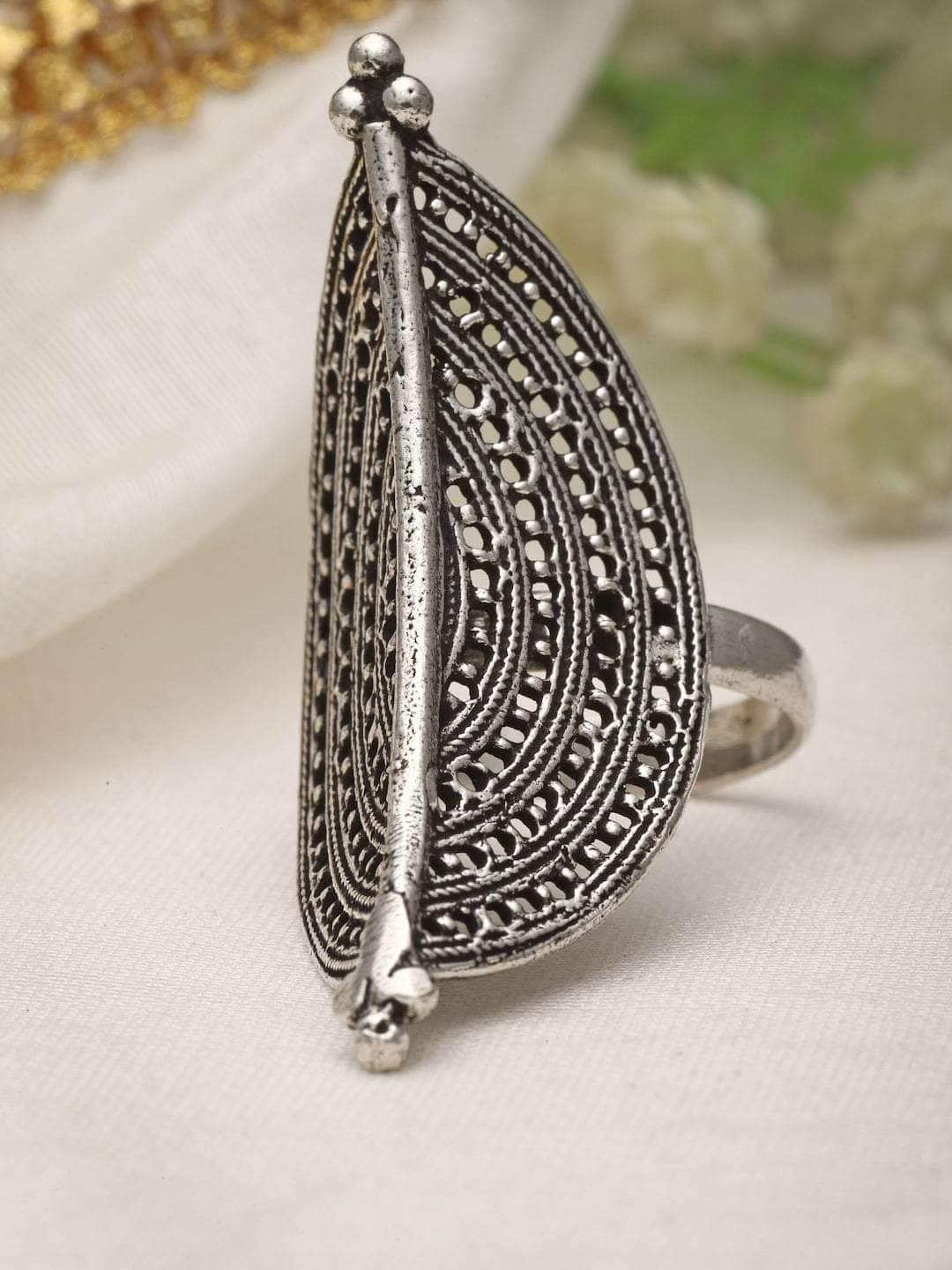 Antique Design Oxidised Silver Plated Finger Ring