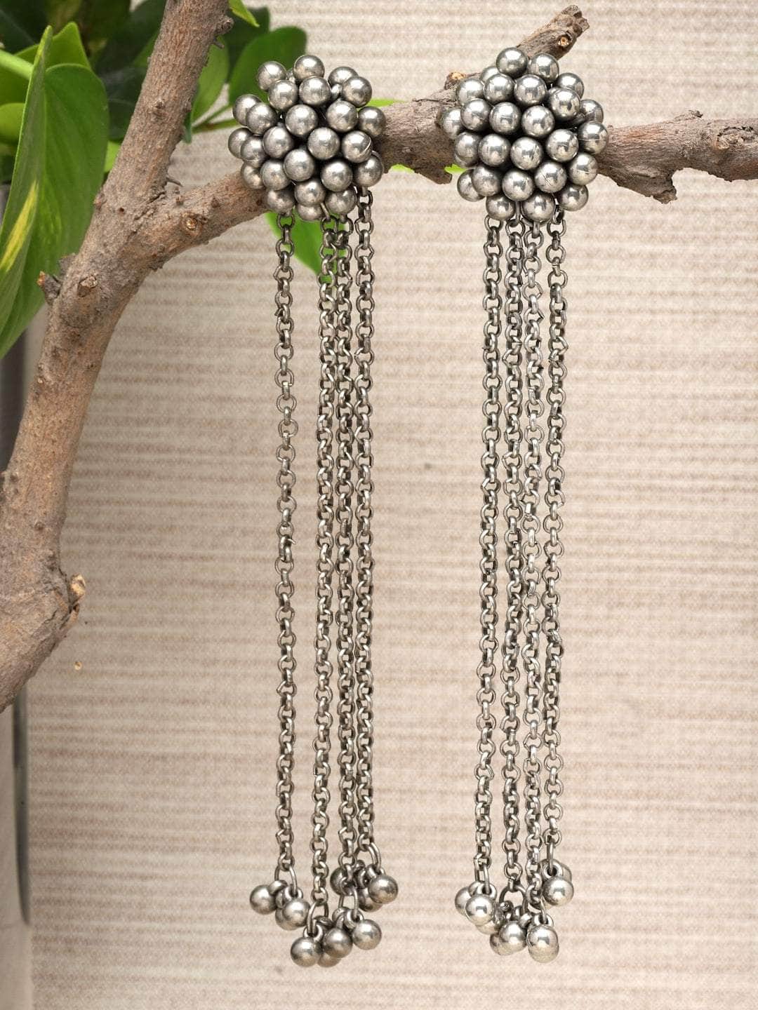 Antique Floral Design Oxidised Long Earrings