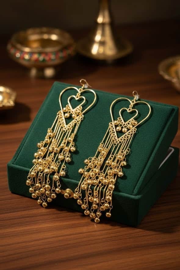 Bahara Heart Shaped Kashmiri Gold Plated Brass Earrings