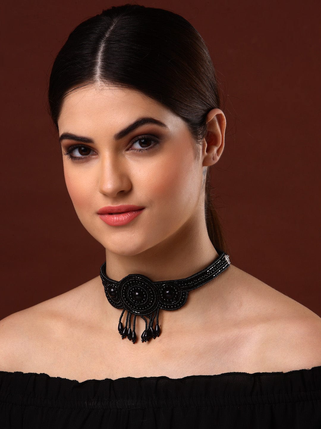 This Black Brass Silver-Plated Choker Necklace is crafted with brass and plated with silver for a durable and timeless look. Its sophisticated style is perfect for any style or event. The silver finish adds an elegant touch for a stunning accent piece.