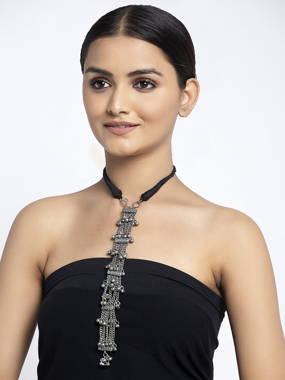 Introducing the Brass Silver-Plated Oxidised Necklace, a unique piece featuring a brass alloy silver-plated chain for a sophisticated finish. The oxidised surface yields a dramatic shine and a glossy finish. Give your look a timeless appeal with this high-quality necklace.