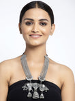 This stylish Brass Silver-Plated Temple Necklace is crafted with a unique design, ensuring lasting beauty and durability. It features a silver plating over brass, providing a glossy finish. Enjoy the contemporary look of this necklace for years to come.