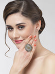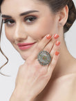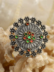 Crystal-Studded Antique Tribal Design Oxidised Finger Ring