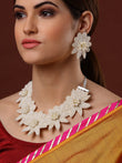 Off White Beaded & Embroidered Floral Designed Handcrafted Jewellery Set