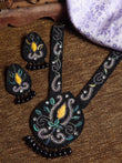 Silver-plated off-white embroidered choker necklace with pearls, beads, and crystals studded, secured with a drawstring closure