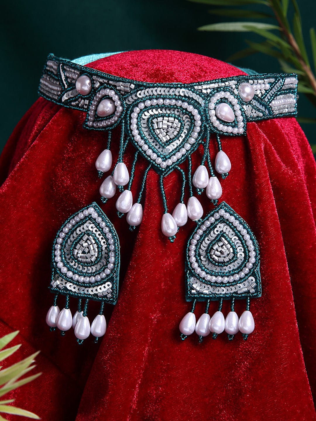 Teal Blue & White Pearl Studded Handcrafted Jewellery Set