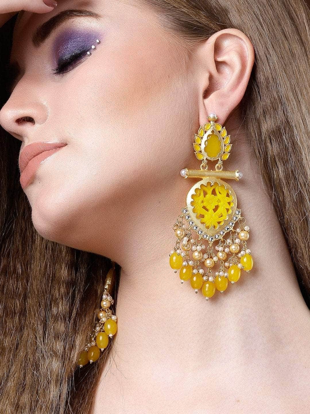 Stone and Pearls Studded Handcrafted Design Gold Plated Aishwarya Earrings
