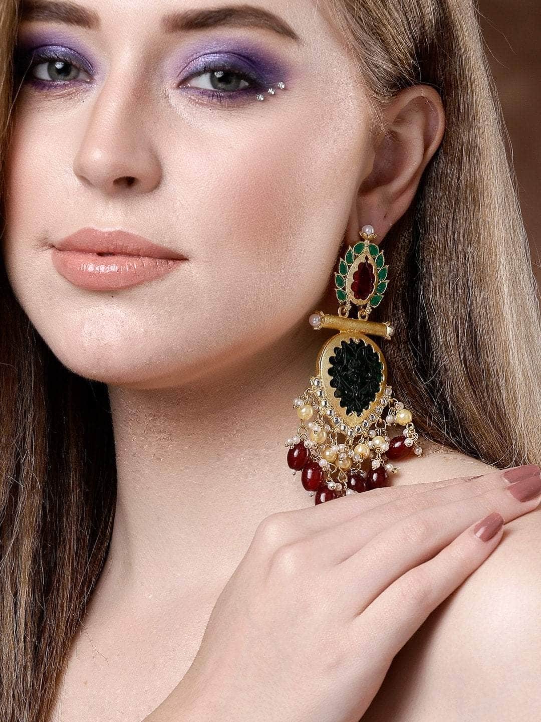 Stone and Pearls Studded Handcrafted Design Gold Plated Aishwarya Earrings