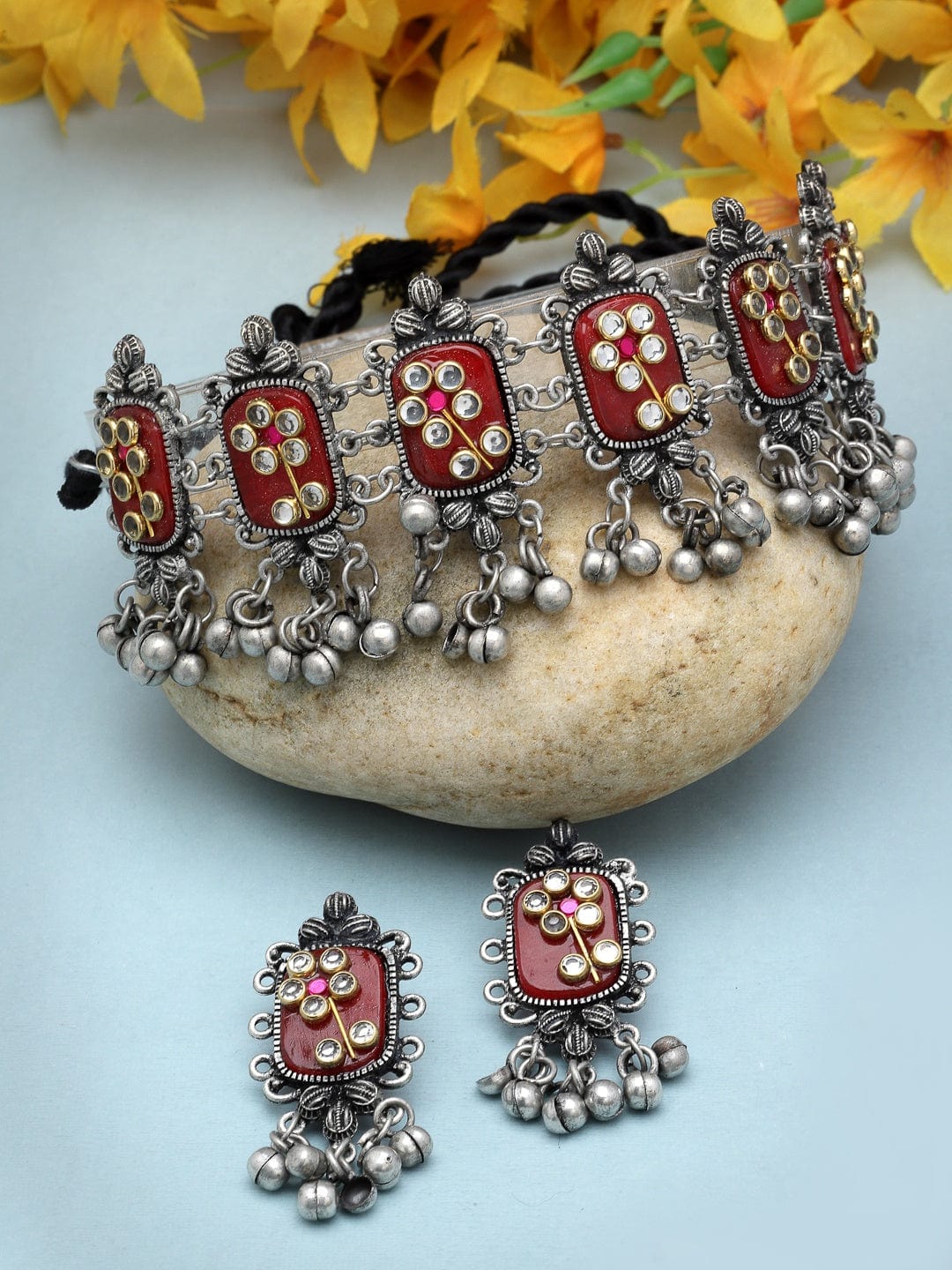 Crystals Studded Afghan Tribal Design Oxidised Silver Plated Handcrafted Jewellery Set