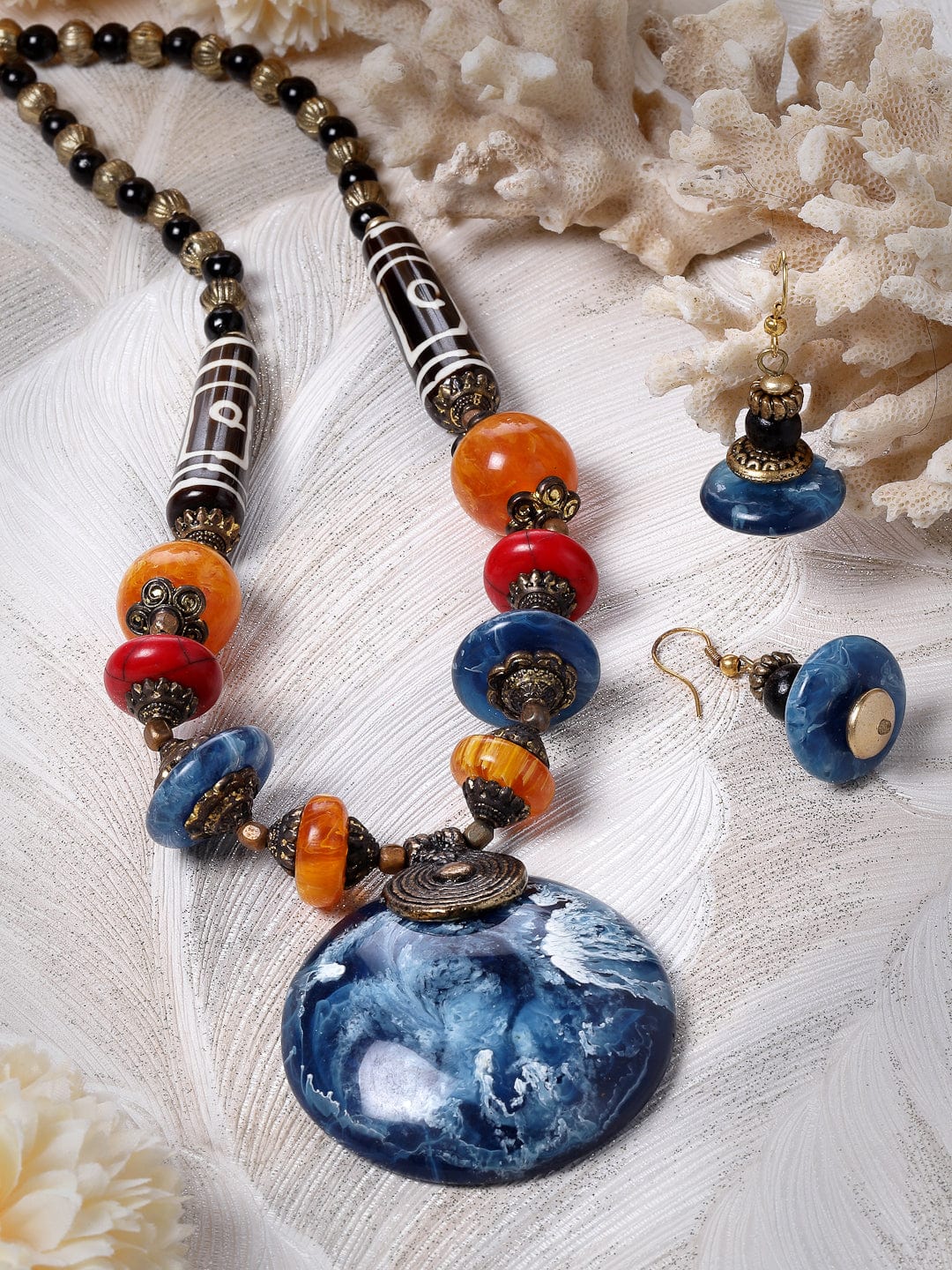 Enamel Work Bohemian Contemporary Design Oxidised Gold Plated Handcrafted Jewellery Set