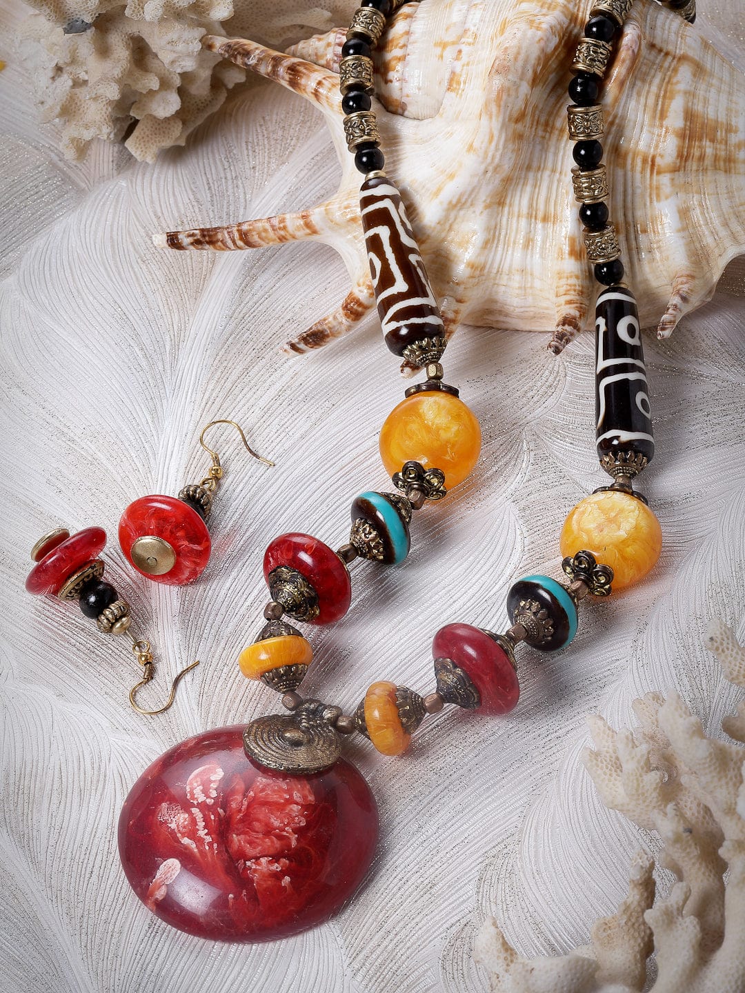 Enamel Work Bohemian Contemporary Design Oxidised Gold Plated Handcrafted Jewellery Set