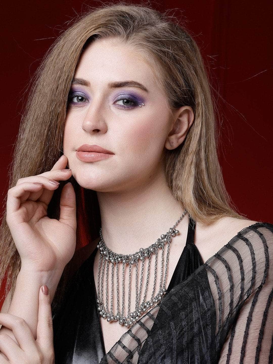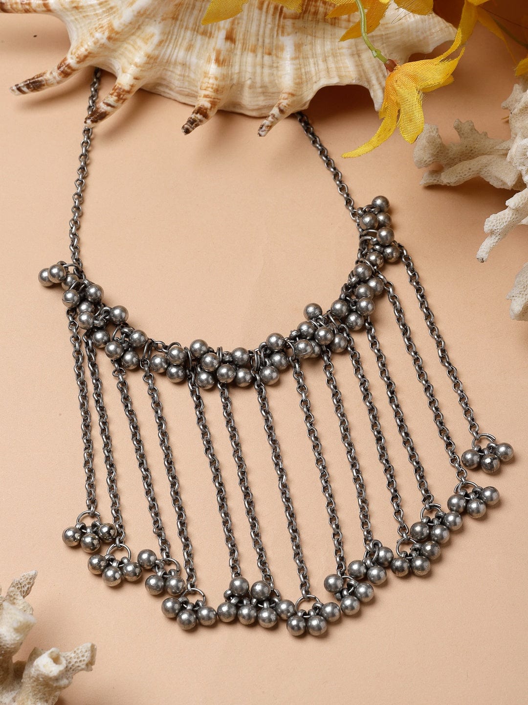 Ghungroo Studded Afghan Tasselled Design Oxidised Silver Plated Handcrafted Necklace