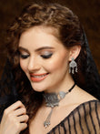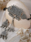 Ghungroo Studded Antique Tasselled Design Oxidised Silver Plated Temple Jewellery Set