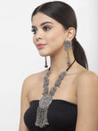 Ghungroo Studded Floral & Tasselled Design Oxidised Silver Plated Layered Jewelry Set