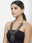 Ghungroo Studded Floral & Tasselled Design Oxidised Silver Plated Tribal Jewelry Set