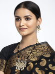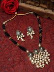 Gold-Plated Black & White Kundan Onyx Studded Pearl Beaded Handcrafted Jewellery Set