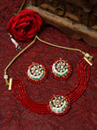 Gold-Plated Red & White Onyx & Kundan-Studded Meenakari Jewellery Set