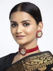 This Gold-Plated Red & White Onyx & Kundan-Studded Meenakari Jewellery Set is a stunning addition to any wardrobe. Crafted with the highest quality gold plating, red and white onyx, and Kundan-studded Meenakari accents, this beautiful set makes a glamorous statement. Perfect for any special occasion or everyday wear.