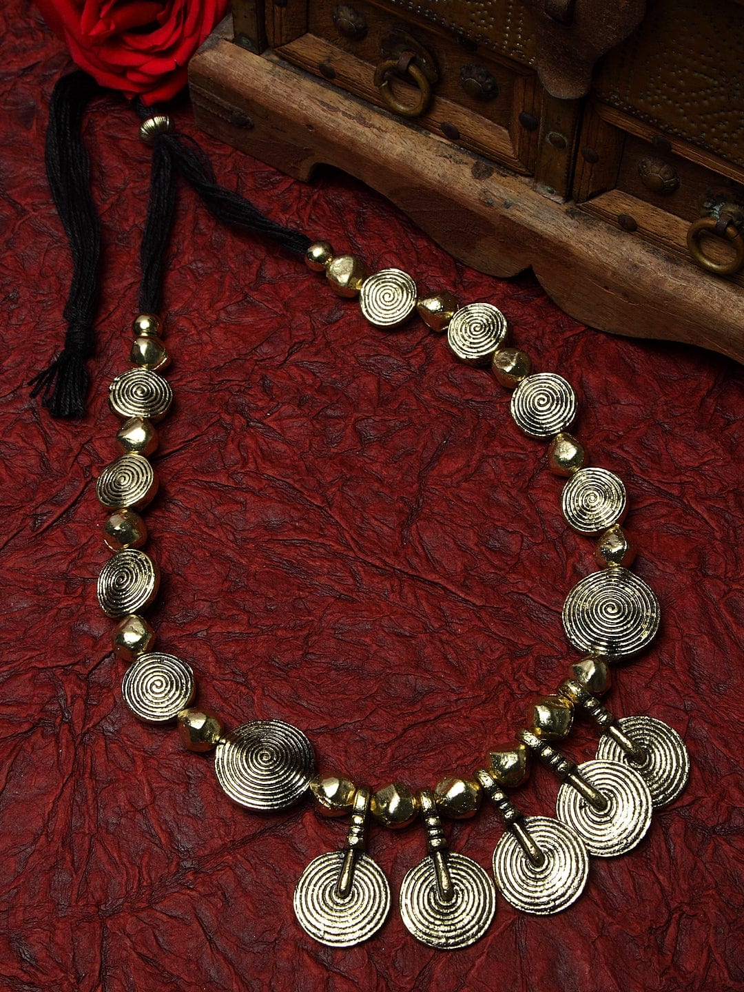This Gold-Toned & Black Brass Gold-Plated Oxidised Necklace is crafted from the finest brass and gold-plated for long-lasting wear. Its unique oxidised finish complements any style. Featuring a sophisticated yet timeless design, this necklace is the perfect addition to your jewellery collection.