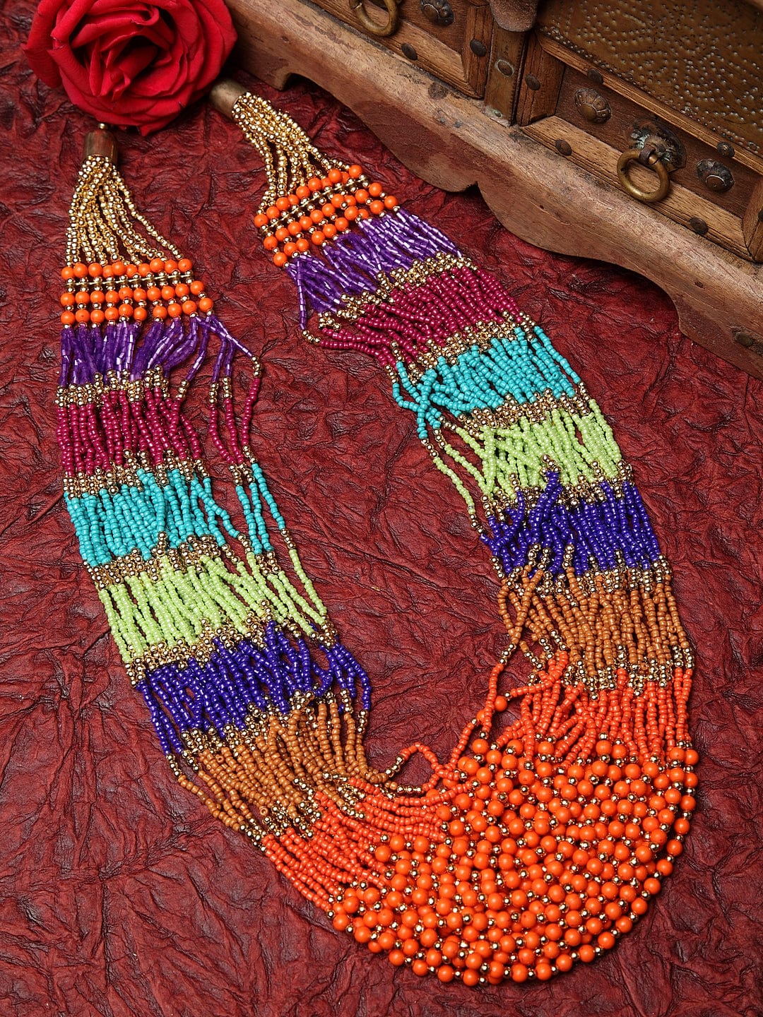 Gold-Toned & Orange Brass Gold-Plated Bohemian Necklace