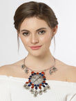 Gold-Toned & Red Brass Silver-Plated Meenakari Necklace