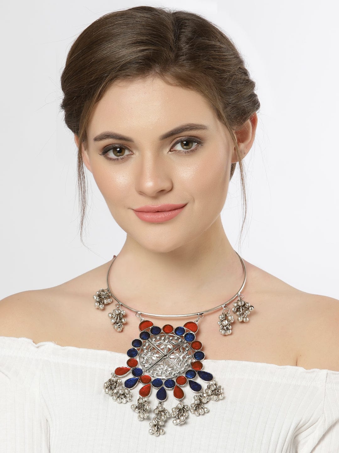 This delicate Gold-Toned & Red Brass Silver-Plated Meenakari Necklace will elevate any ensemble. Crafted with premium gold-toned brass and silver-plated with a meenakari design, this necklace is the perfect accessory for any occasion. Showcase your style with a timeless touch of sophistication.