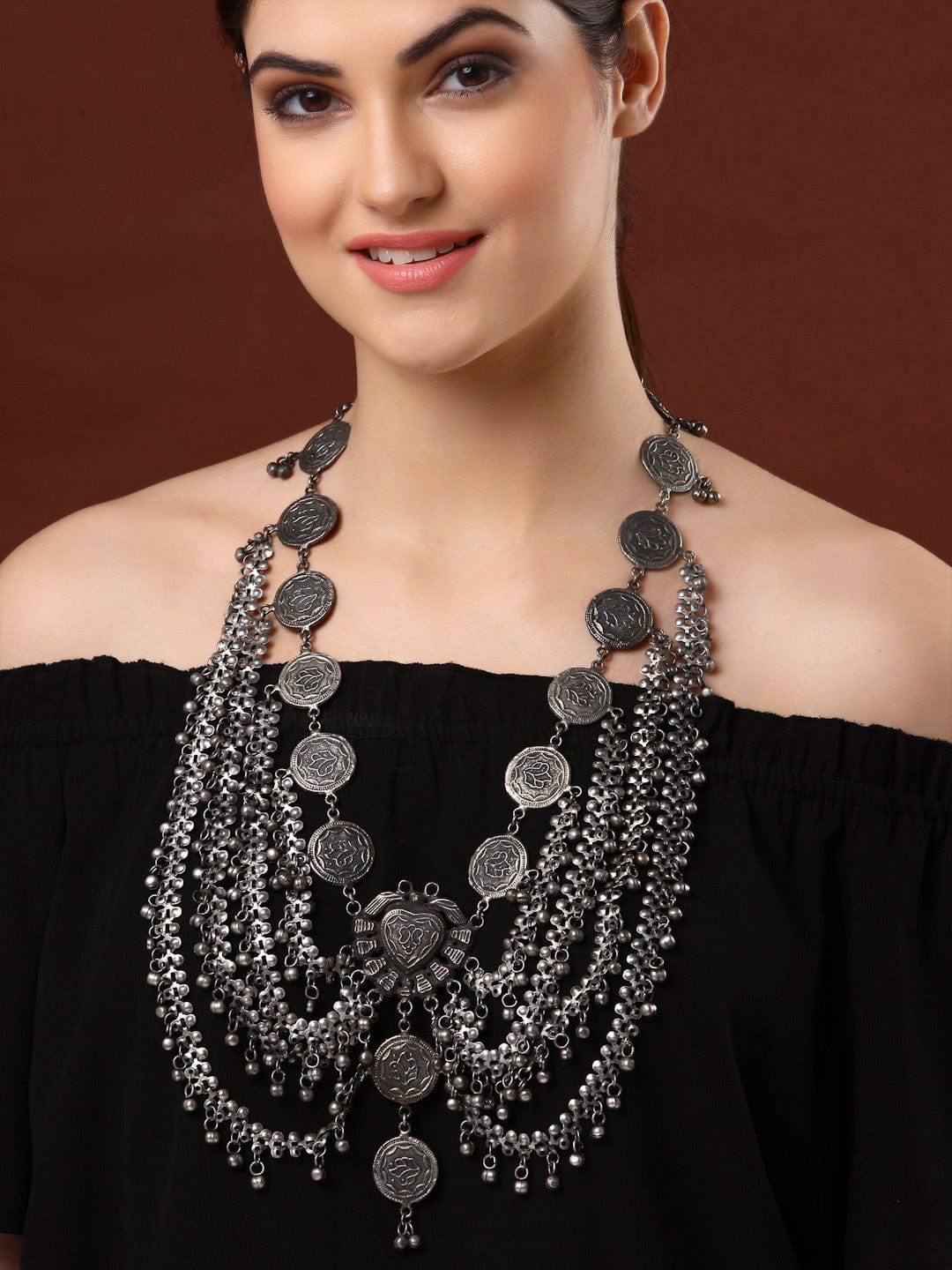 Gunmetal-Toned Brass Silver-Plated Tribal Necklace