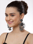 Gunmetal-toned contemporary drop earrings, silver-plated