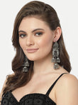 Gunmetal-Toned Dome Shaped Tasselled Design Jhumkas Earrings