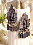 These contemporary Gunmetal-Toned Pearls Drop Earrings are perfect for adding a touch of sophistication and elegance to any outfit. The gunmetal-toned pearls offer a subtle yet alluring contrast that will leave a lasting impression.