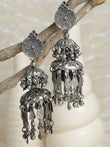 Gunmetal-Toned Silver Plated Contemporary Jhumkas Earrings