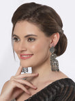 Experience timeless beauty with these contemporary Jhumkas earrings. Crafted with high-quality gunmetal-toned silver plating, the earrings will add a beautiful and sophisticated touch to your ensemble. With their intricate design, these Jhumkas earrings will enhance your radiance for years to come.