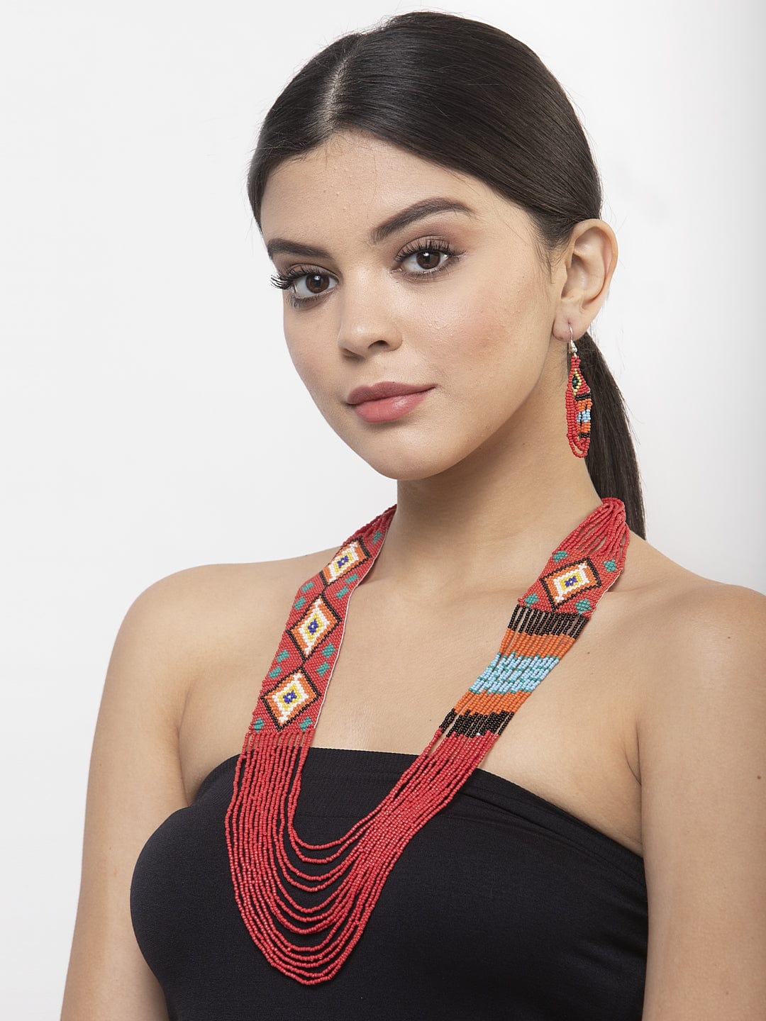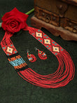 Hand Woven Red & Yellow Beaded Layered Design Handcrafted Afghan Jewelry Set