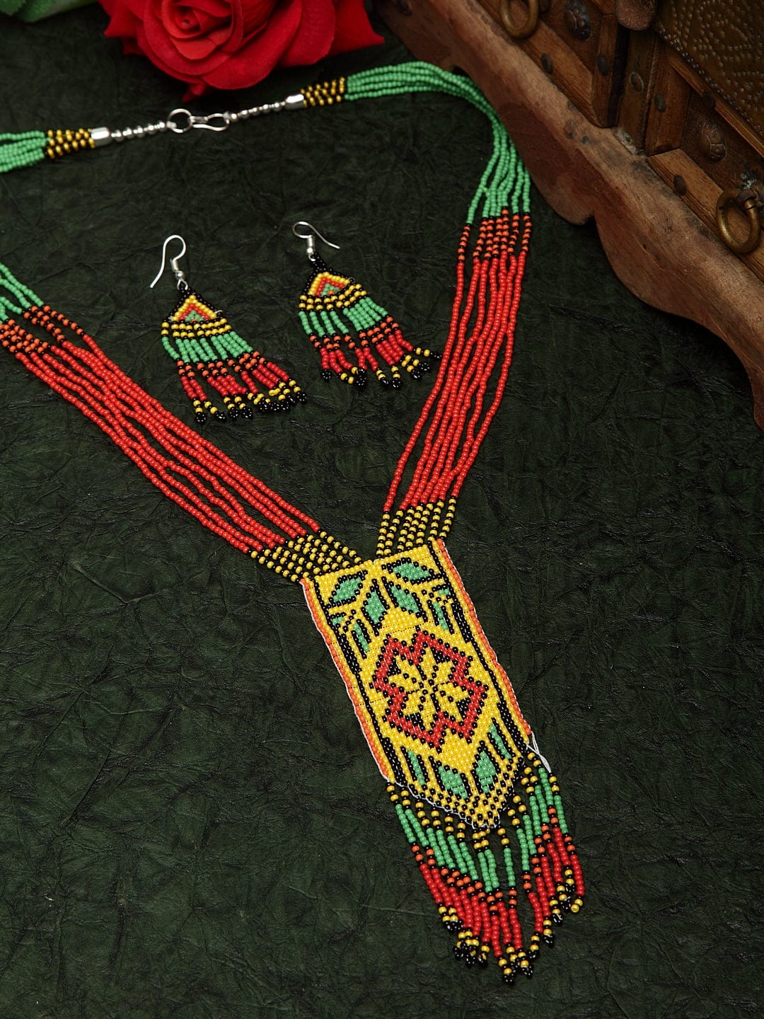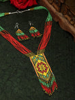 Hand Woven Red & Yellow Beaded Layered Tasselled Design Handcrafted Afghan Jewelry Set