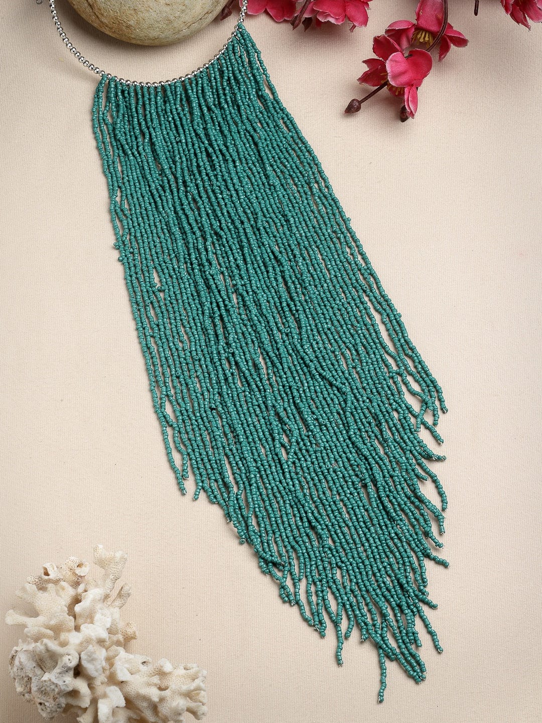 Handcrafted Beads Studded Layered Tasselled Design Oxidised Silver Plated Choker