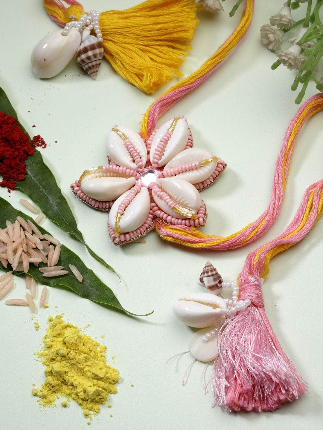 Handcrafted Cowri Rakhi with Roli-Chawal