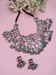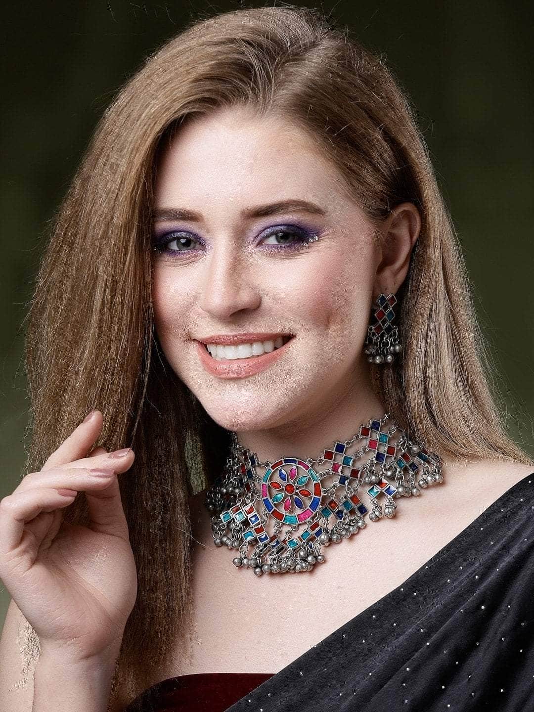 Handcrafted Multi Color Meenakari Work Filigree Design Silver Plated Antique Tribal Jewellery Set