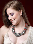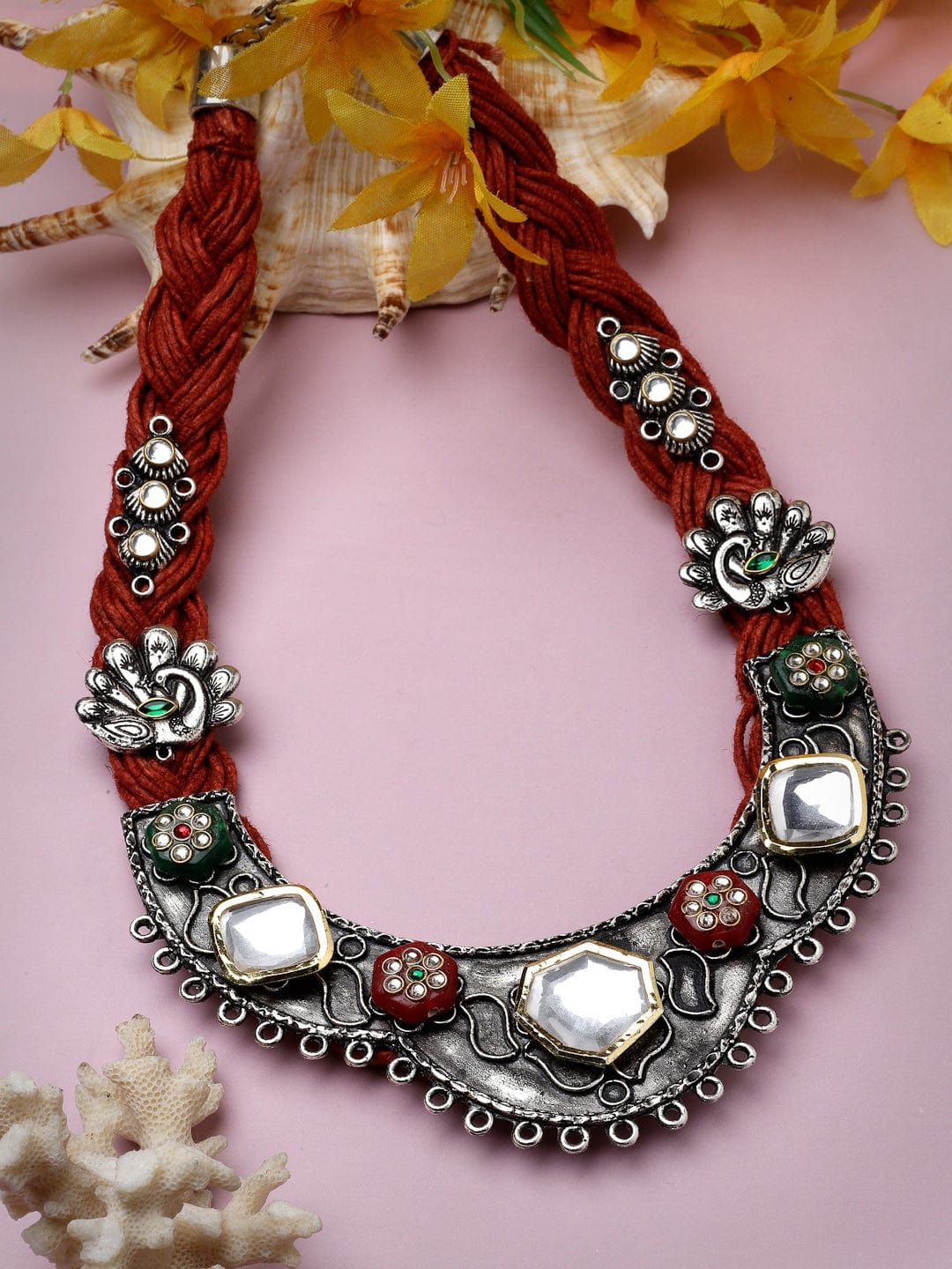 Kundan Studded Handwoven Tribal Design Oxidised Silver Plated Antique Layered Necklace