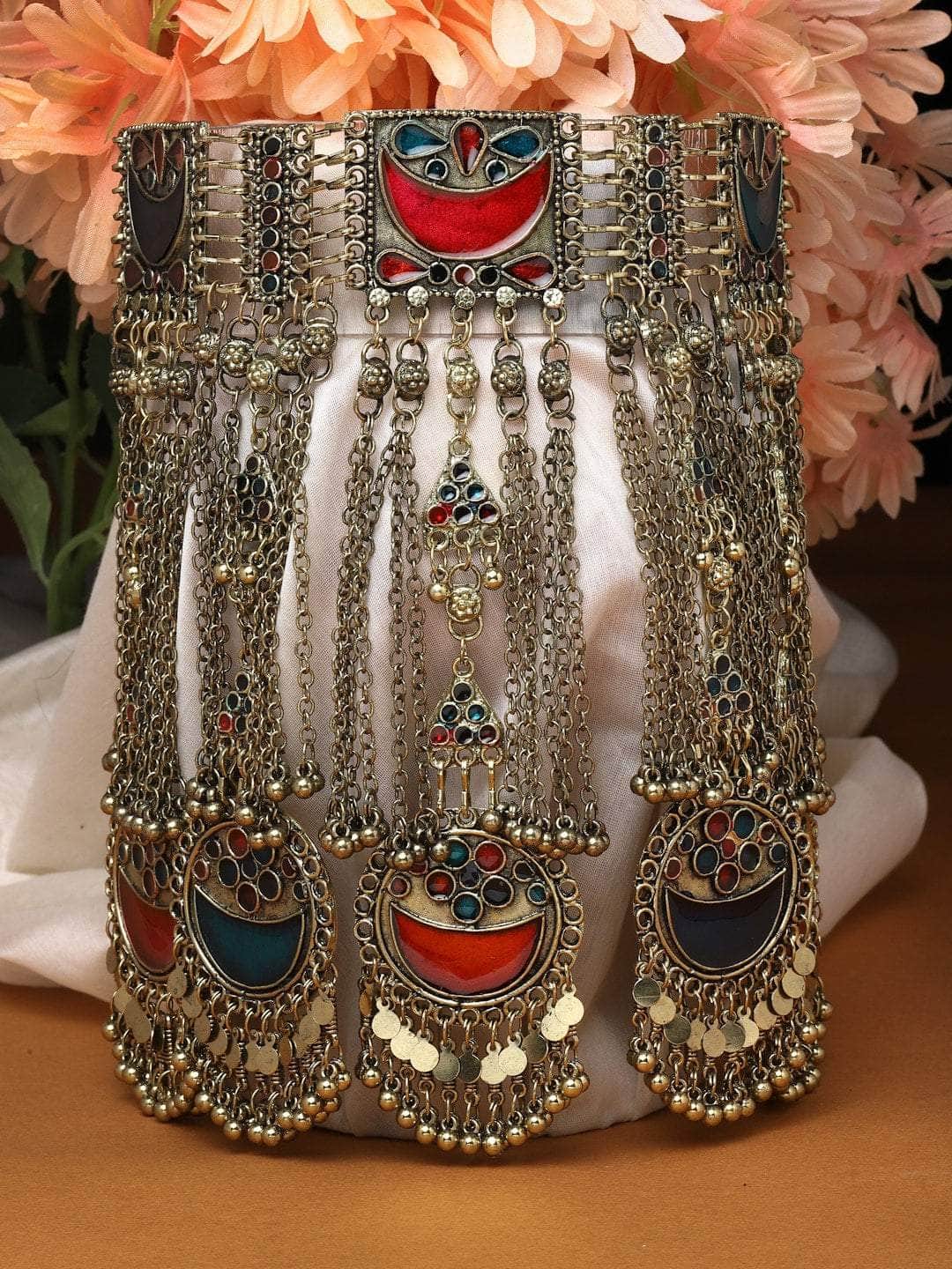Kiara Meenakari Work Afghan Tribal Design Oxidised Gold Plated Handcrafted Necklace