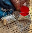 Add a royal touch to your essentials with this beautifully crafted mini coin clutch. Designed in luxe metallic tones of gold and silver, it features intricate embossed detailing and a secure clasp lock. The sleek chain strap makes it easy to carry, whether as a chic sling or a stylish statement in hand.