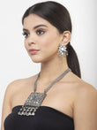 Mirror and Ghungroo Studded Oxidised Silver Plated Handcrafted Afghan Jewelry Set
