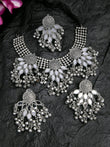 Oxidised silver-plated mirror-studded handcrafted necklace, has ghungroo beaded droplets