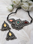 Mirrors-Studded Oxidised Antique Jewellery Set
